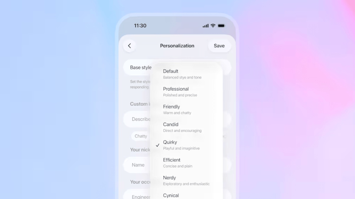 GPT-5.1发布的同时,OpenAI还为用户推出了更精细、更直观的个性化定制功能。